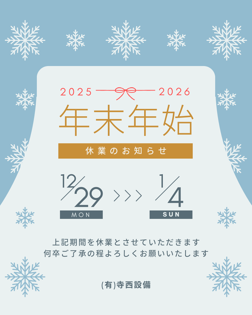 休業期間:2025年12月29日(月)〜2026年1月4日(日)